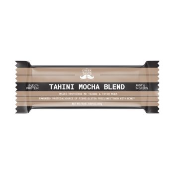Η Tahini Mocha Blend συνδυάζει την ένταση του καφέ με τη γη της Ανατολής. Πλούσιο ταχίνι, κακάο και ήπιο άρωμα espresso δένουν με φυτική πρωτεΐνη σε μια ωμή, clean-label μπάρα ενέργειας.